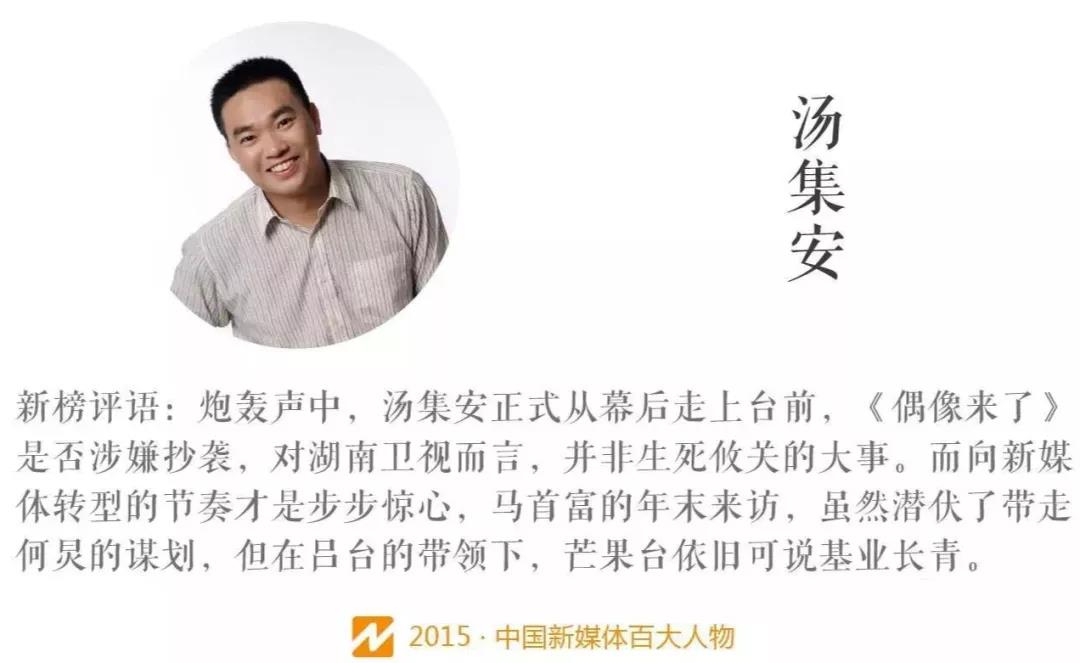 作诗和书法是汤集安的两大爱好,而他更为人所知的身份是——湖南卫视总编室副主任,擅长话题制造和事件营销的品牌专家,新媒体运营专家,2014和2015年“中国新媒体百大人物”。