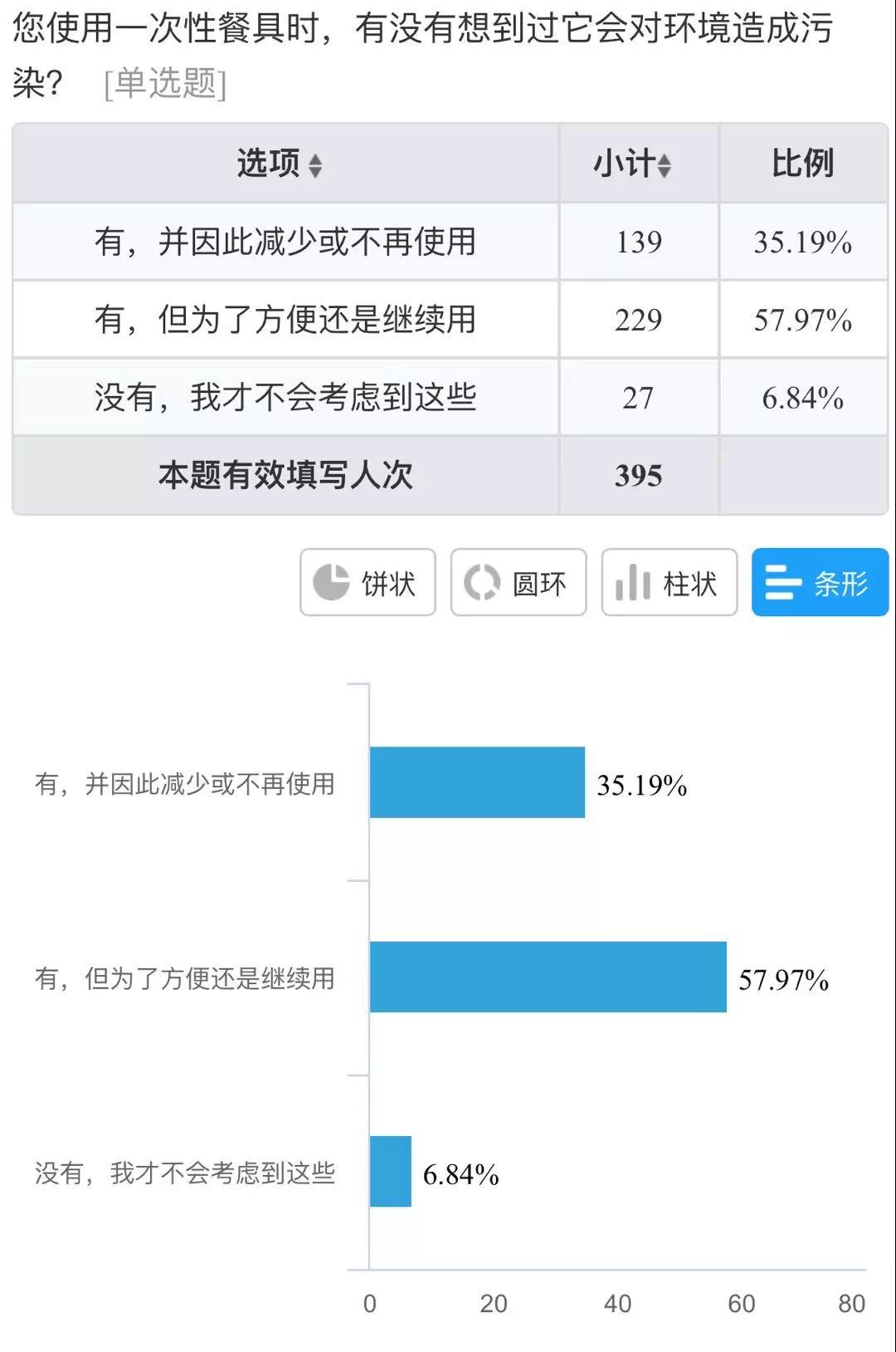 根据记者此前进行的问卷调查结果来看,近七成同学在用餐时高频率地使用一次性制品,而不使用一次性筷子(勺子)的同学只有5%。