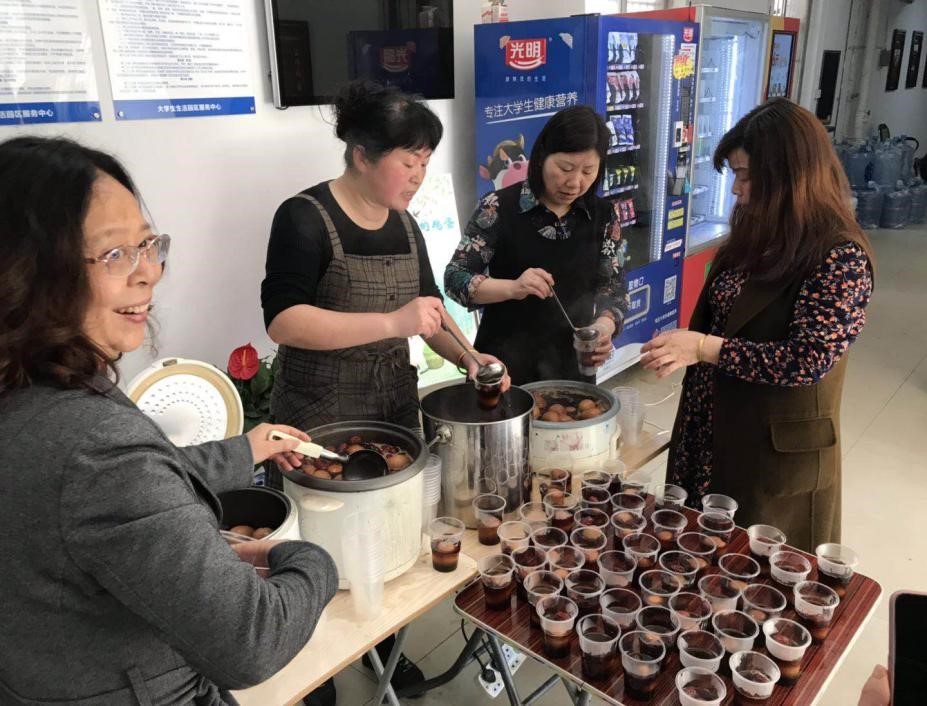 有的同学看到了活动海报和通知特地赶来,更多的同学是在外出时意外地收到了阿姨热情端到面前的地菜煮蛋。
