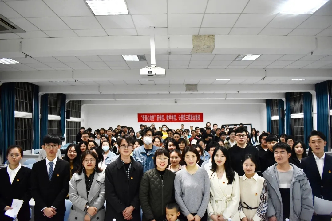 、数学学院、公共管理学院三院联合团校开班仪式在北楼217教室举行,数学院党委副书记熊雅、新传院党委副书记李洪玉、新传院分团委书记杨湘雨、数学院团委书记蔡煜、公管院团委书记闫振振莅临开班仪式,参加团课的三院学生干部出席。