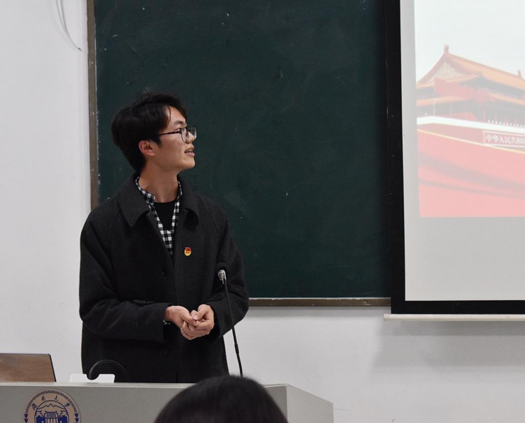在奏唱校歌后,开班仪式结束,随后闫振振老师开始了三院联合团校第一次理论学习的授课。他首先讲述了共青团最重要的两段历史,即“五四运动”和“一二九运动”的历史,讲述共青如何发挥党的预备队、生力军作用,呼吁共青团员明确对团员身份的认识,坚定理想,培养优秀品质,提升文化素质,“用楷模的力量去影响其他同学”。