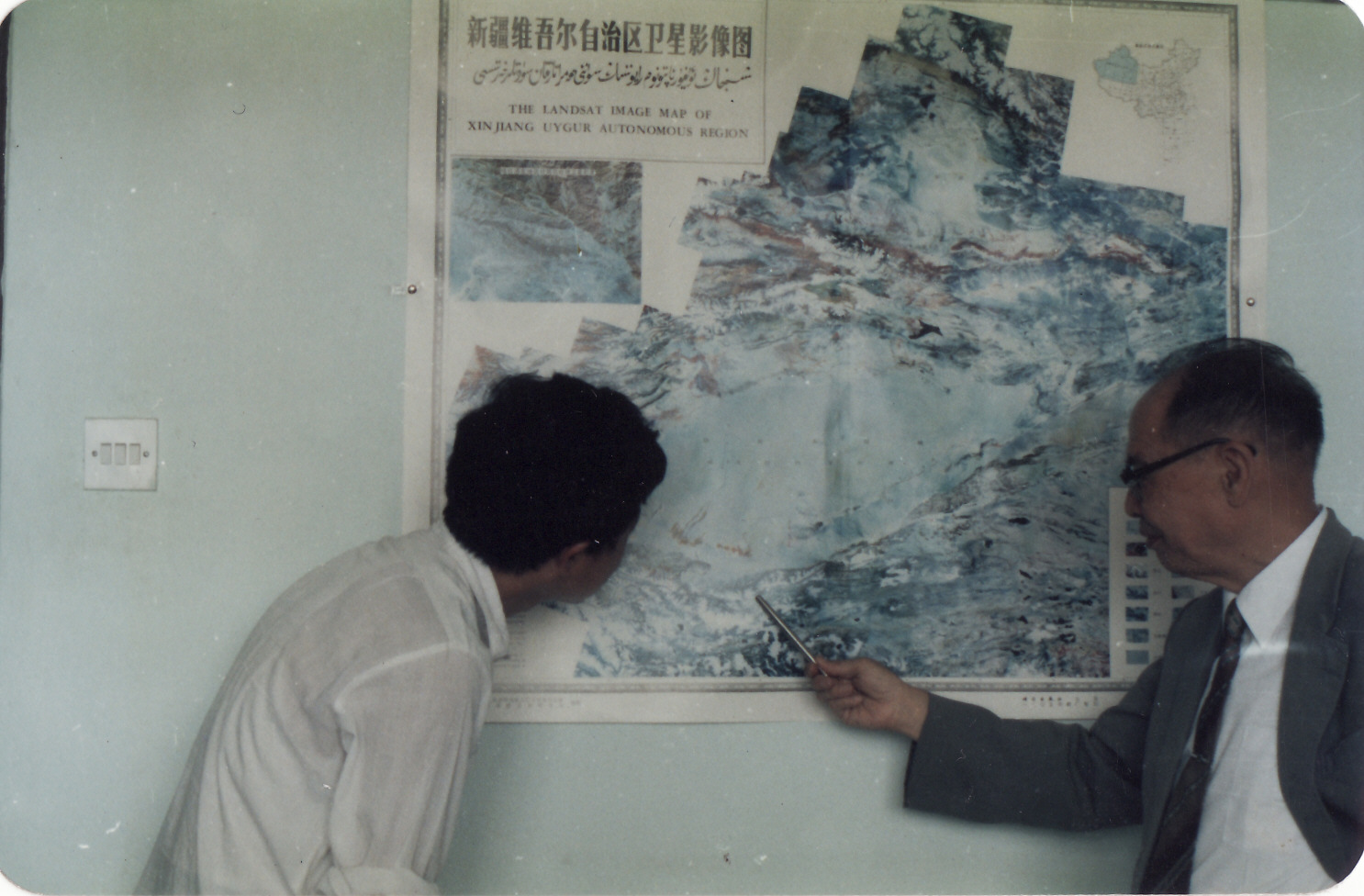 陈国达先生在办公室向笔者介绍新疆地质构造特征