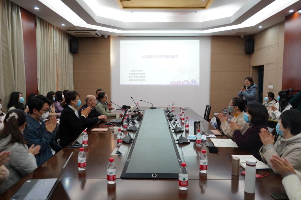 北楼307会议室举行,中央政治局集体学习主讲专家、欧洲科学院外籍院士、清华大学熊澄宇教授围绕“从媒体融合到媒体再造”主题开展讲座。讲座由新传院副院长阳美燕教授主持,雷跃捷教授、李洪玉副书记等师生参加。