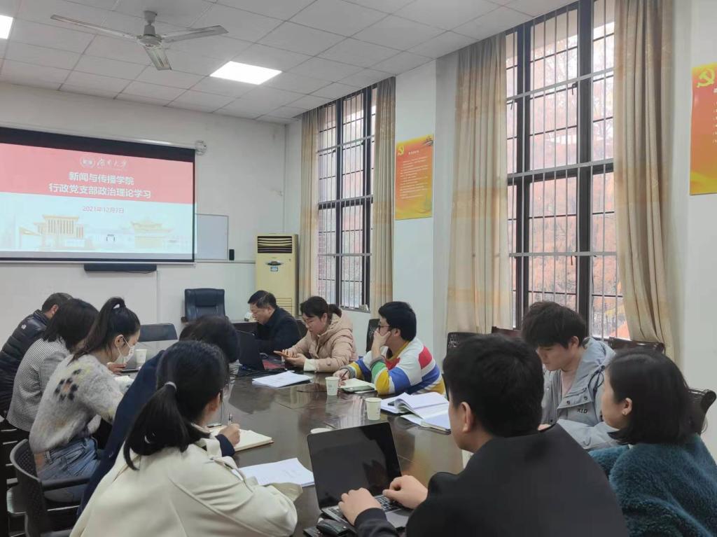 行政党支部政治理论学习大会在北楼306召开,学院全体管理辅助人员参加,会议由党委副书记李洪玉主持。