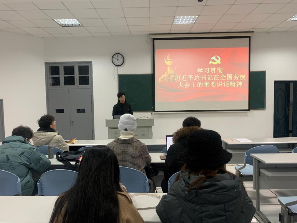 本科生新闻党支部和本科生广播编联合党支部在北楼117教室共同开展了以“学习贯彻习近平总书记在全国劳模大会上的重要讲话精神”为主题的党日活动。