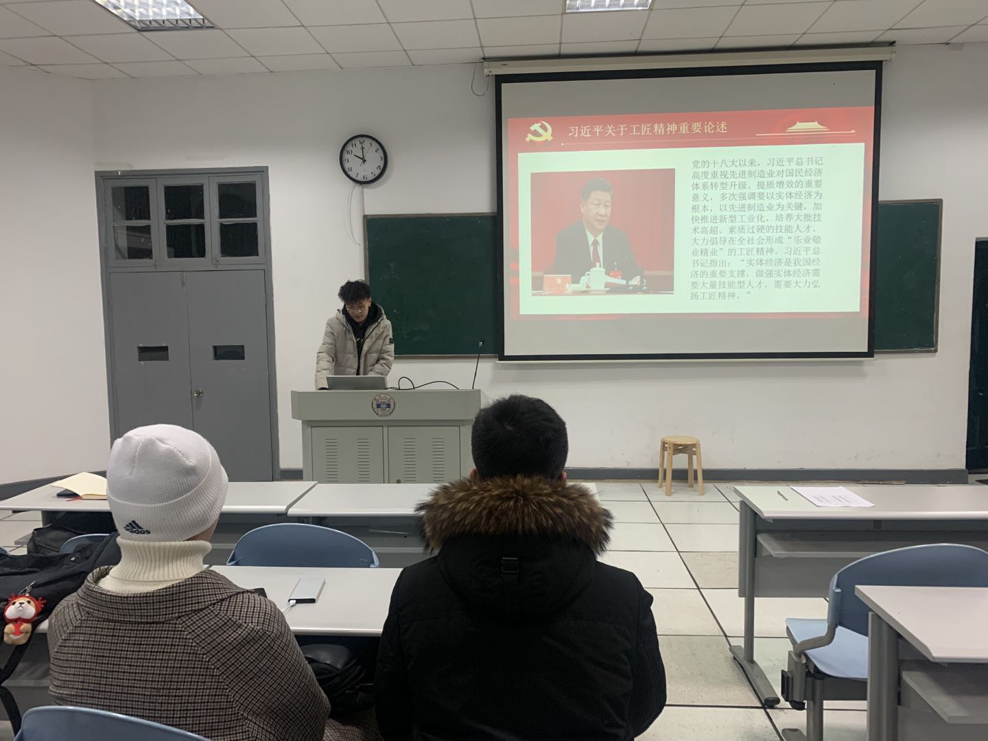本科生新闻党支部副书记赵培霖同志针对习近平总书记关于工匠精神的重要论述作出了解读,他提到工匠精神是以爱国敬业、精益求精为核心的职业道德观;是甘于奉献、争创一流的人才价值观;是敢于突破、勇攀高峰的创新观。站在新发展格局和新发展阶段的历史交汇点上,全党和全国人民要在习近平新时代中国特色社会主义思想的引领下,坚定不移地走中国特色工业强国之路,既要实现工匠精神在新时代的守正创新,又要发挥工匠精神在现代工业发展中的价值支撑作用。