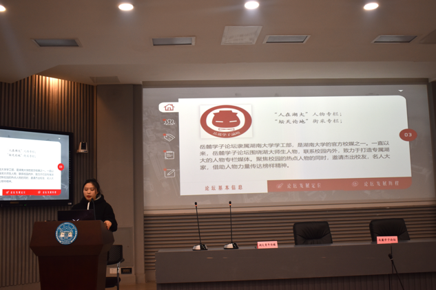 (“岳麓学子论坛”熊玲珑在台上分享)