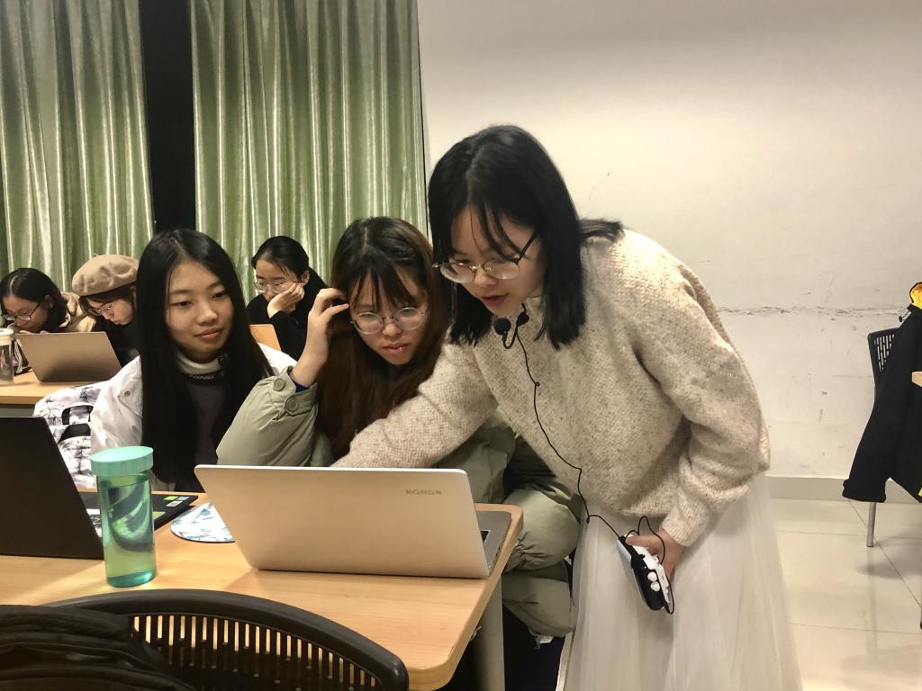 在讲授过程中,刘心睿同学多次结合自己的实践经历,向同学们介绍了一些实用技巧,有助于提升同学们使用PR软件的效率,减少同学们在实际操作中的问题。她也多次走下讲台,与同学们进行互动,为同学们解答疑问,了解同学们的听课状况,并根据此对授课进程进行适当调整。
