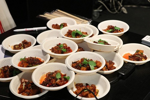 “辣得眼泪直冒,麻得舌尖发颤,香得口水直流,爽得浑身舒畅。”美食PK节目《走南闯北》主持人朱乔娜念着顺口溜,手上端着这盘刚刚做好的四川小吃“伤心凉粉”,而她的对手——另一位节目主持人杜泽睿面前盛好的是热气腾腾的“蒙古奶茶”。一个代表南方特色美食,一个代表北方特色美食,为了赢得这场PK,两位主持人极尽口才,说做法、说味道、说故事,并将美食装盘分发给导师和同学们品尝,一时间班会上气氛盎然。