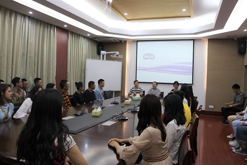 入学报到时的情景。谢赤副校长不仅仅解答了大家学业上的一系列疑问,还聆听了同学们在学校生活中遇到的困难并承诺解决。