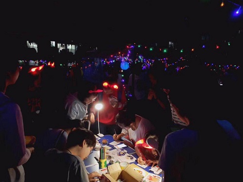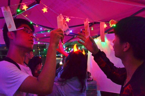 夜幕降临,在天马公寓一片闪烁的灯火之中,一张简单的小桌子旁,许多同学都写下对远方家人和朋友的思念与祝福。一张小小的明信片承载着一份份真真切切的深情。有一个同学这样写给她的父亲:“亲爱的爸爸:今天是中秋节,但是我却在异乡不能回家陪您,在中秋团圆的日子里,我们身在两地望着同一轮明月,我向您保证我会在耽美漫画