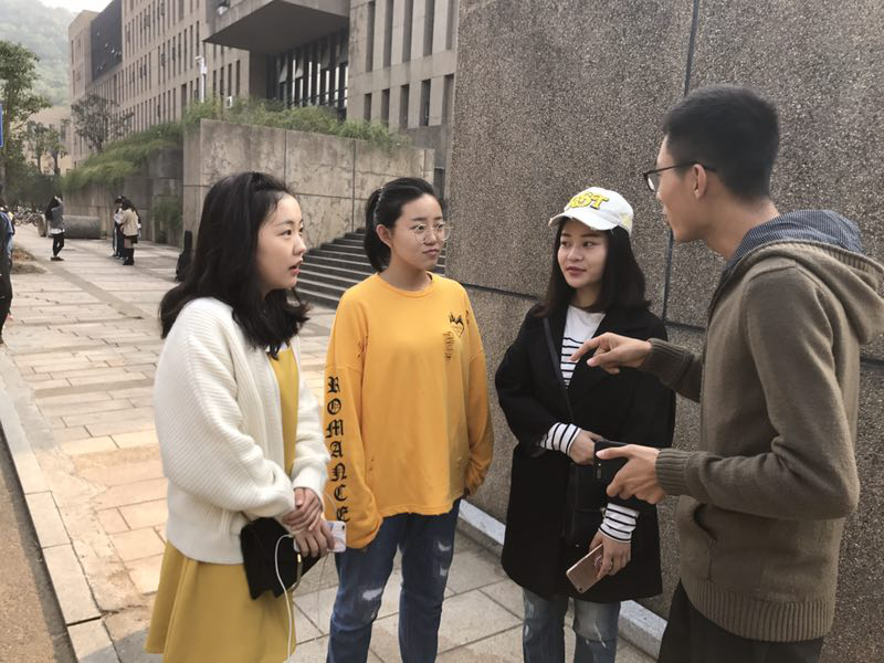 “你拿台本的样子,最美最帅最迷人”,17级播音班的同学们在综合楼前积极探讨练声的方式,互相切磋播音技巧。在整个活动中,各组成员各抒己见,掌握了很多发音的小技巧,在交流中共同进步。