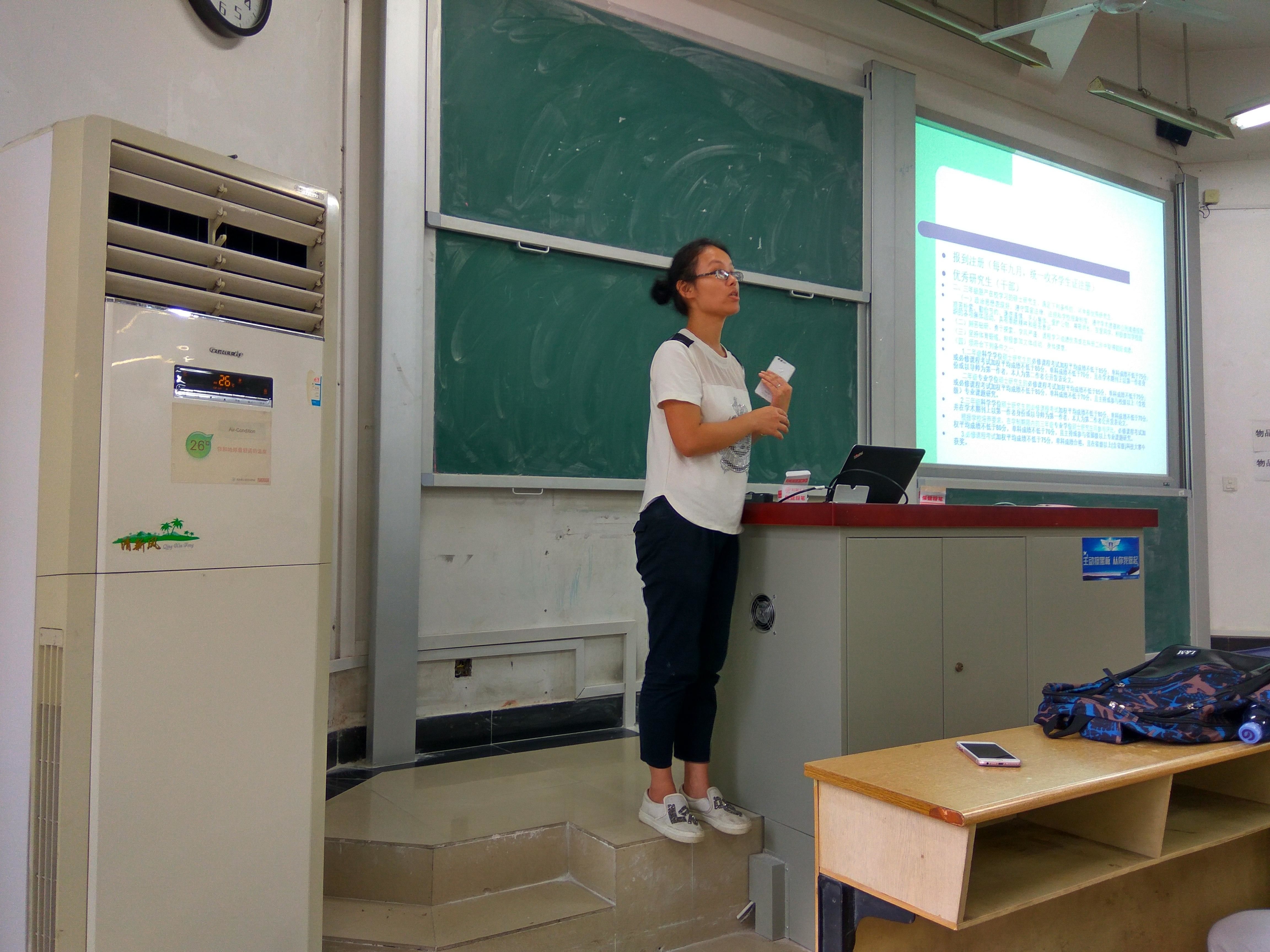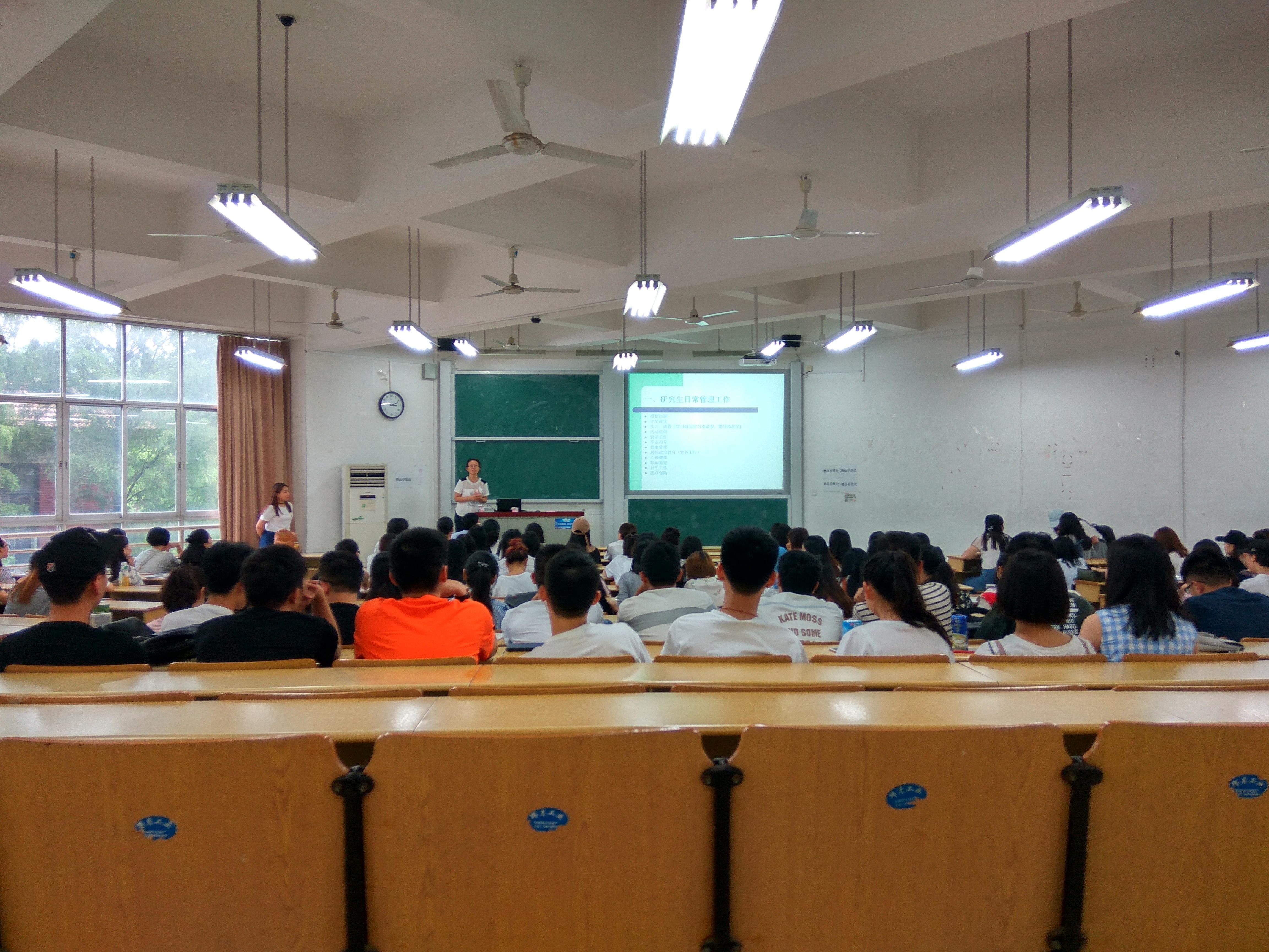 首先,刘婵老师就研究生日常管理工作向大家做了介绍,主要包括报到注册、评奖评优、实习请假等十二个方面,基本涵盖了研究生生活的各个方面。大家对研究生生活有了一个初步的了解,对即将开始的研究生生活有了初步的规划。大家都表示,老师的发言“很精彩、很有用”。潘少光老师针对大家刚入学存在的一系列问题以及对生活上存在的疑问给予了解答,同时勉励大家在接下来的研究生生活中要更加努力,书写自己人生的华美乐章。