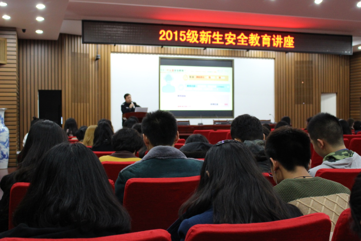 保卫处的黄发林老师。新影院2015级全体本科生以及辅导员刘佳老师参加了本次讲座。